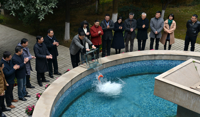 隨后,公司黨委書記、總裁李葉青投放錦鯉,當寓意吉祥的錦鯉躍入水中時,現場掌聲雷動,干部員工激動自豪之情溢于言表,慶祝活動也在歡聲笑語中結束。