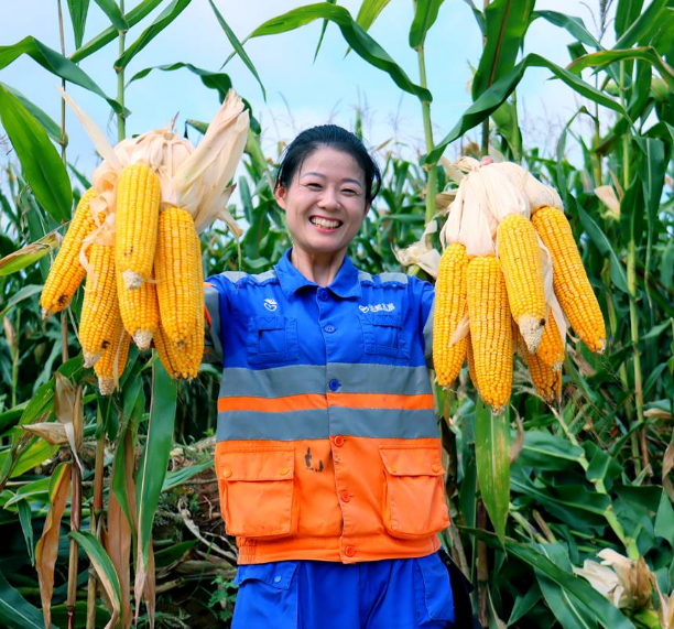 參天工業(yè)園志愿者幫助村民搶收玉米